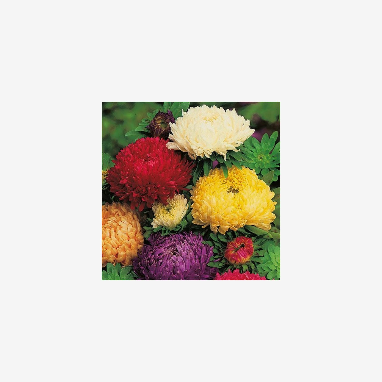 Aster Duchess Mix är en elegant sort med stora, tätt fyllda blommor som påminner om krysantemum. Den blommar rikligt från sensommaren och är ett utmärkt val för både rabatter och som snittblomma tack vare sina stadiga stjälkar.