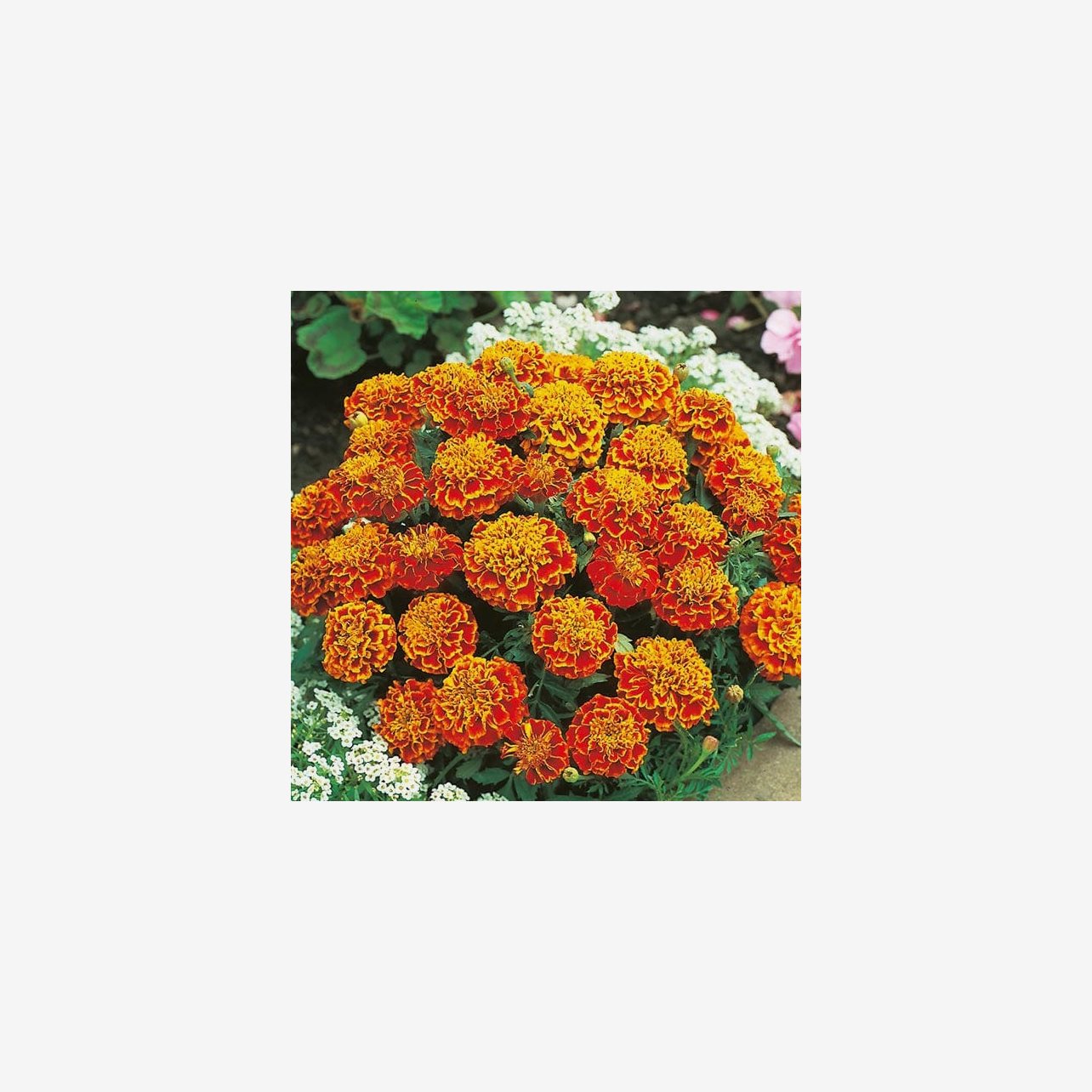 Tagetes Honeycomb är en iögonfallande och kompakt sommarblomma med tätt fyllda blommor i djupt rött, vackert kantade i gult. Sorten ger ett varmt och dekorativt uttryck i rabatter, krukor och lådor där de tydliga färgkontrasterna verkligen kommer till sin rätt.