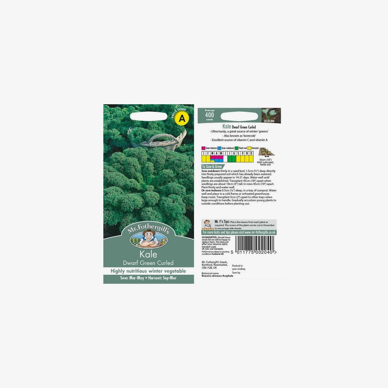 Grönkål Dwarf Green Curled är en lågväxande och mycket härdig sort som ger riklig skörd av krusiga, mörkgröna blad. Den är särskilt uppskattad som vintergrönsak och tål kyla mycket väl, vilket gör den till ett utmärkt val för lång skördeperiod under höst och vinter. Sorten är även känd under namnet borecole.