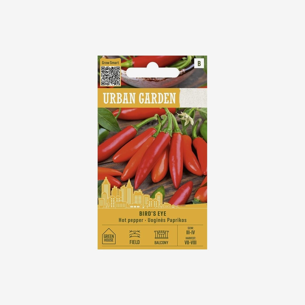 Chili Birds Eye är en kompakt och mycket stark chilisort som passar utmärkt för odling i kruka, på balkong eller i växthus. Trots sina små frukter ger plantan riklig skörd och används både färsk, torkad och till konservering.