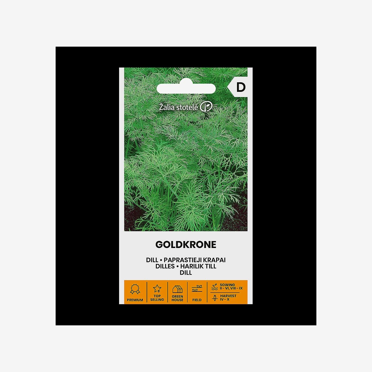 Dill Goldkrone är en högavkastande sort med mörkgröna blad och sen blomning, vilket ger lång skördeperiod. Sorten är lättodlad, anspråkslös och passar både på friland, i växthus och i kruka.