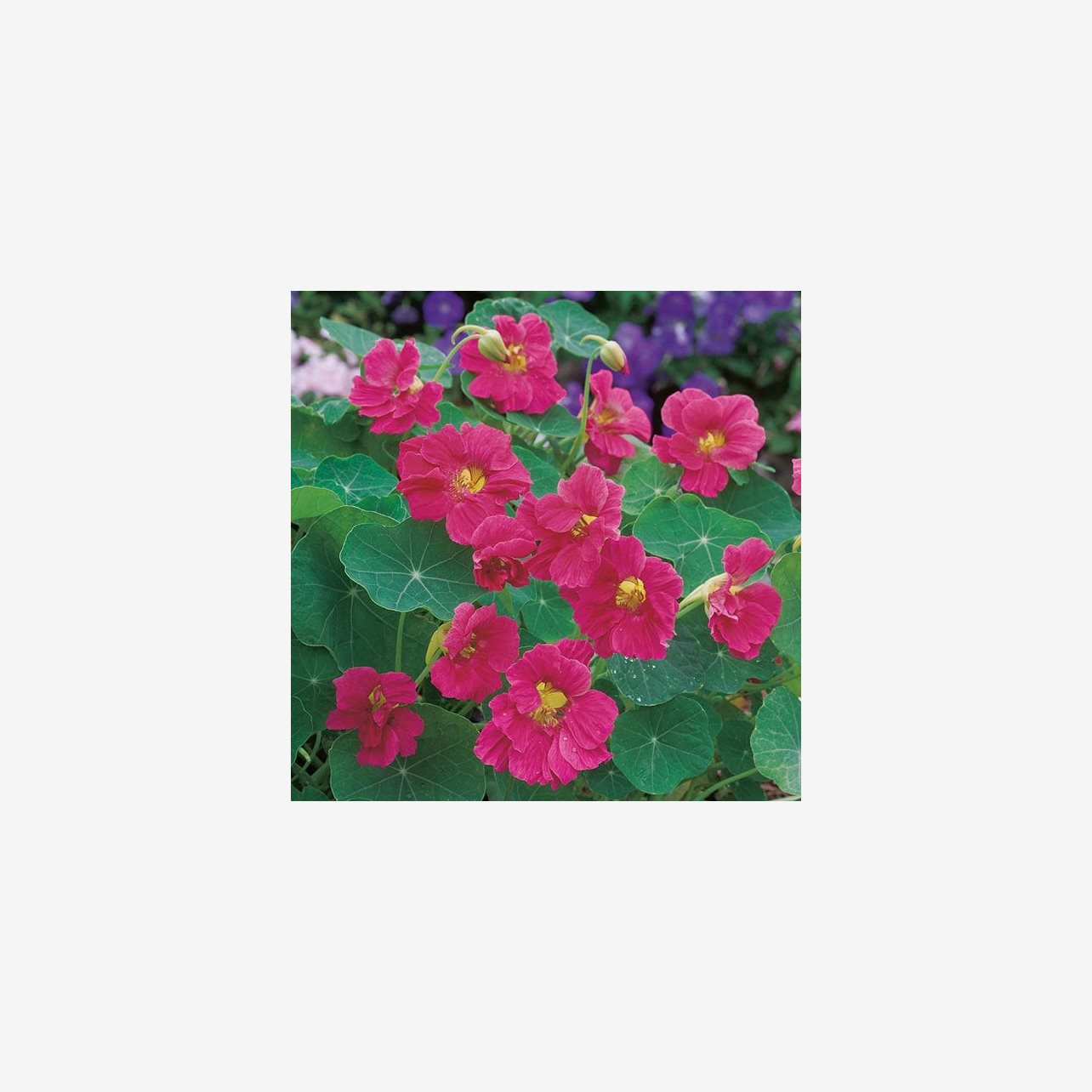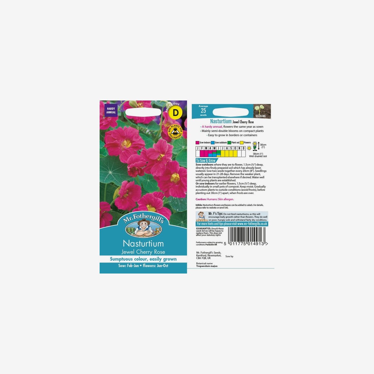 Fröpåsen innehåller cirka 25 fröer. Plantorna blir omkring 30 cm höga. Det latinska namnet är Tropaeolum majus. Blommorna är rosa och mycket attraktiva för bin och fjärilar. Krasse är en härdig ettåring som trivs bäst i soligt läge och väldränerad, gärna mager jord. Både blommor och blad är ätliga och har en frisk, pepprig smak som passar utmärkt i sallader och som dekoration.