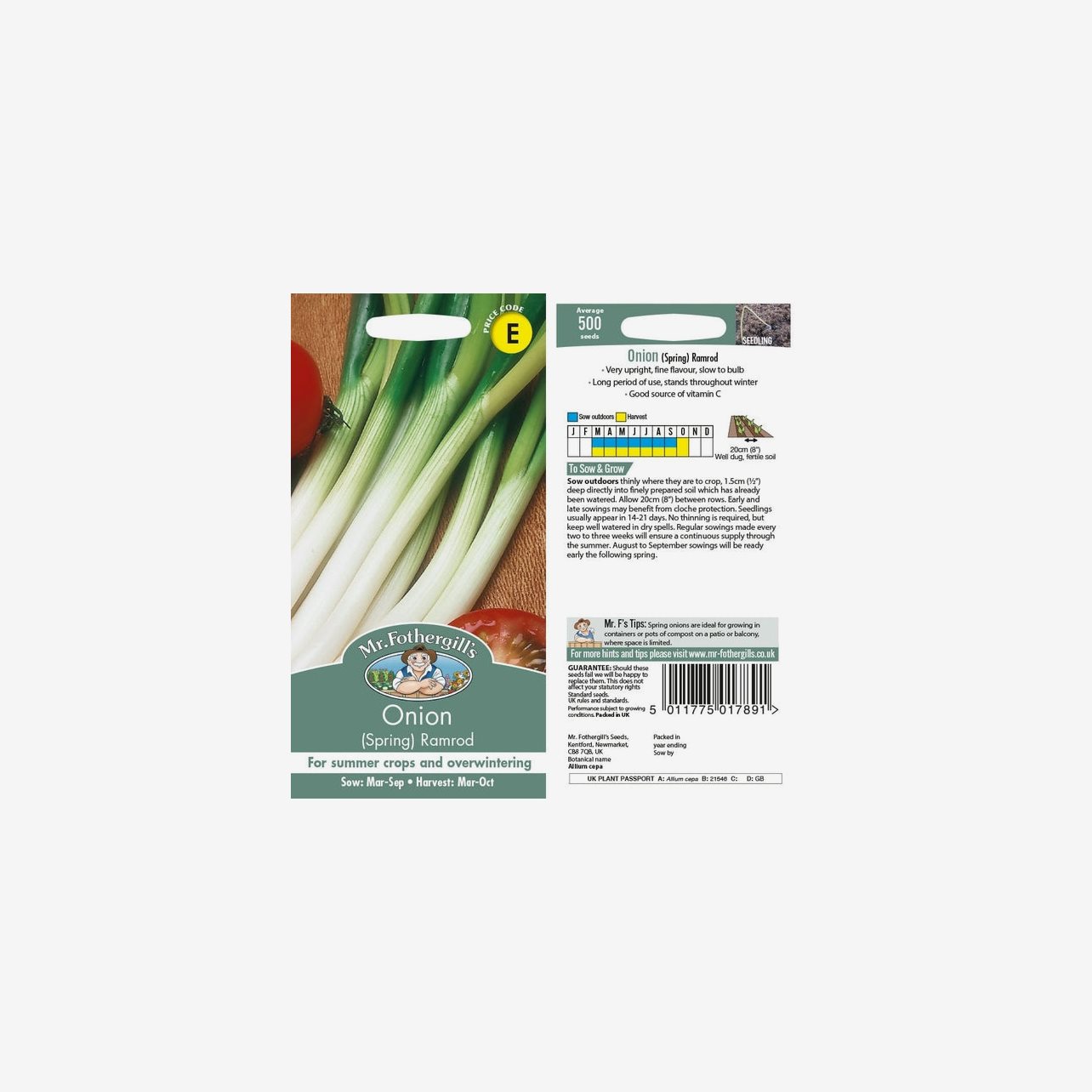 Odlingsanvisning: Salladslök Ramrod direktsås utomhus från mars till september där den ska växa. Så fröerna tunt cirka 1,5 cm djupt i välbearbetad, fuktad jord med cirka 15 cm mellan raderna. Håll jorden jämnt fuktig tills groningen kommit igång, vilket normalt sker inom 14–21 dagar. Ingen gallring behövs. För jämn och lång skörd kan sådd upprepas varannan till var tredje vecka. Skörda salladslöken successivt genom att dra upp hela plantor eller klippa efter behov. Salladslök trivs bäst i soligt till lätt halvskuggigt läge.