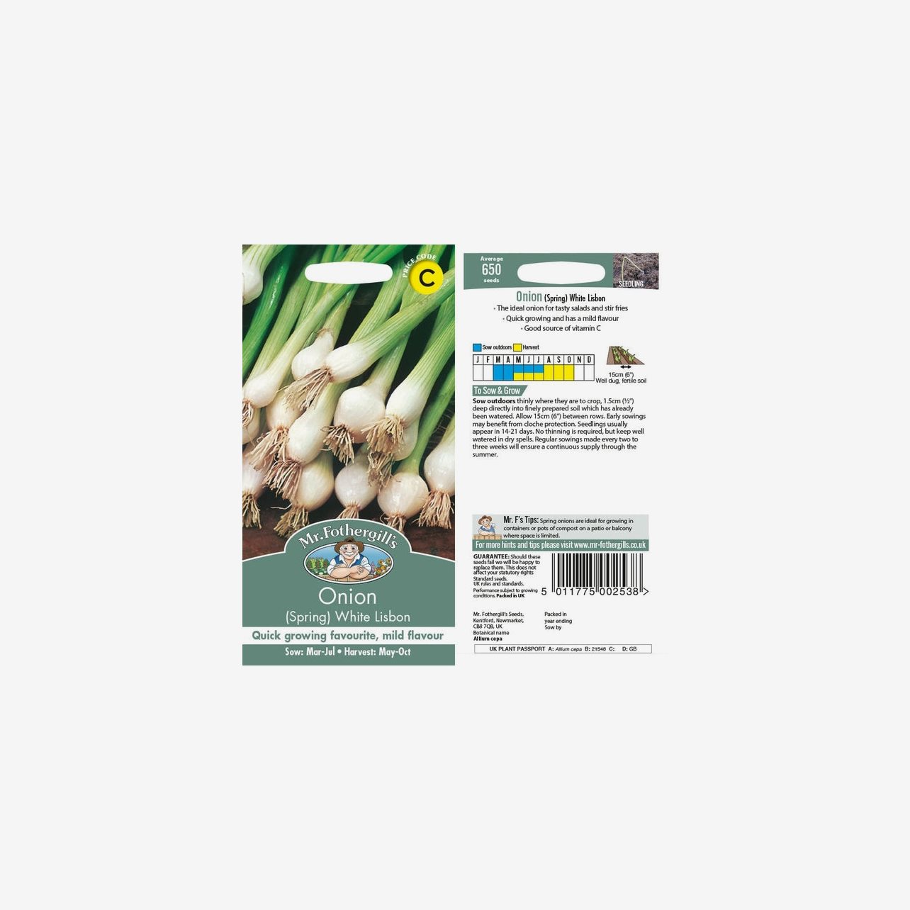 Fröpåsen innehåller cirka 650 fröer. Det latinska namnet är Allium cepa. Plantorna blir omkring 30 cm höga och skördas unga som salladslök. Blommorna är vita om plantorna får gå i blom, men sorten odlas främst för sina späda stjälkar.
