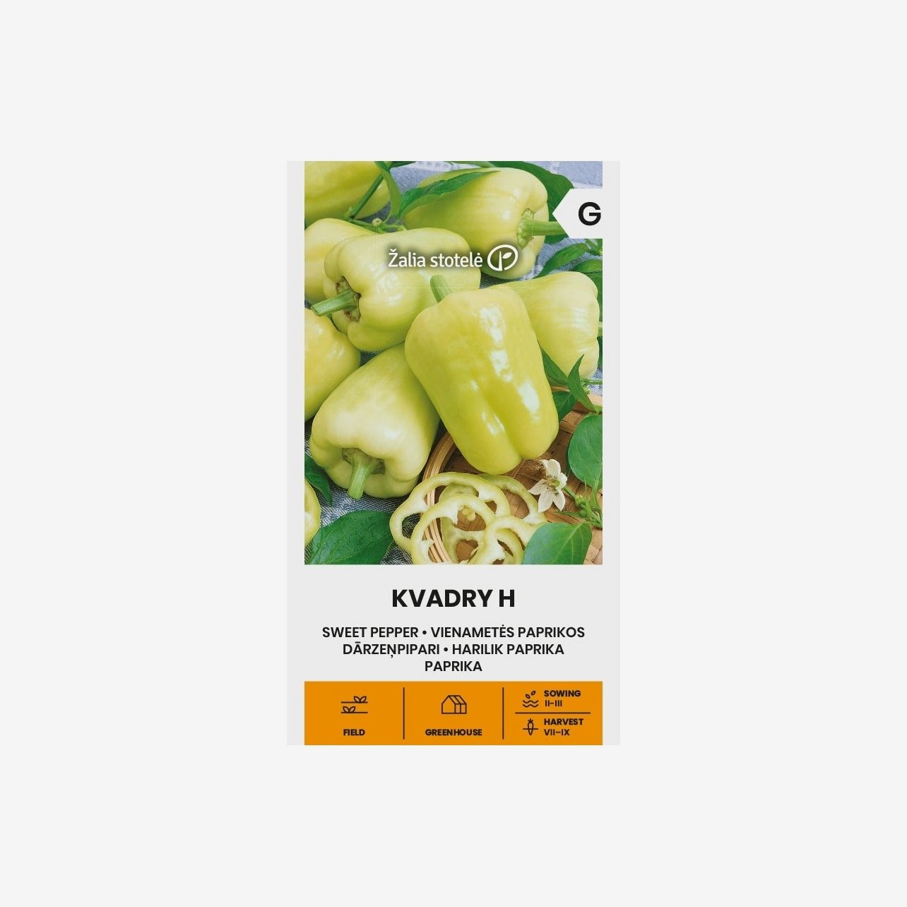 Paprika Kvadry F1 är en tidig och högavkastande hybridsort som ger jämna, kubformade frukter med tjocka väggar. Sorten är motståndskraftig mot sjukdomar och passar för odling både i växthus och på friland.