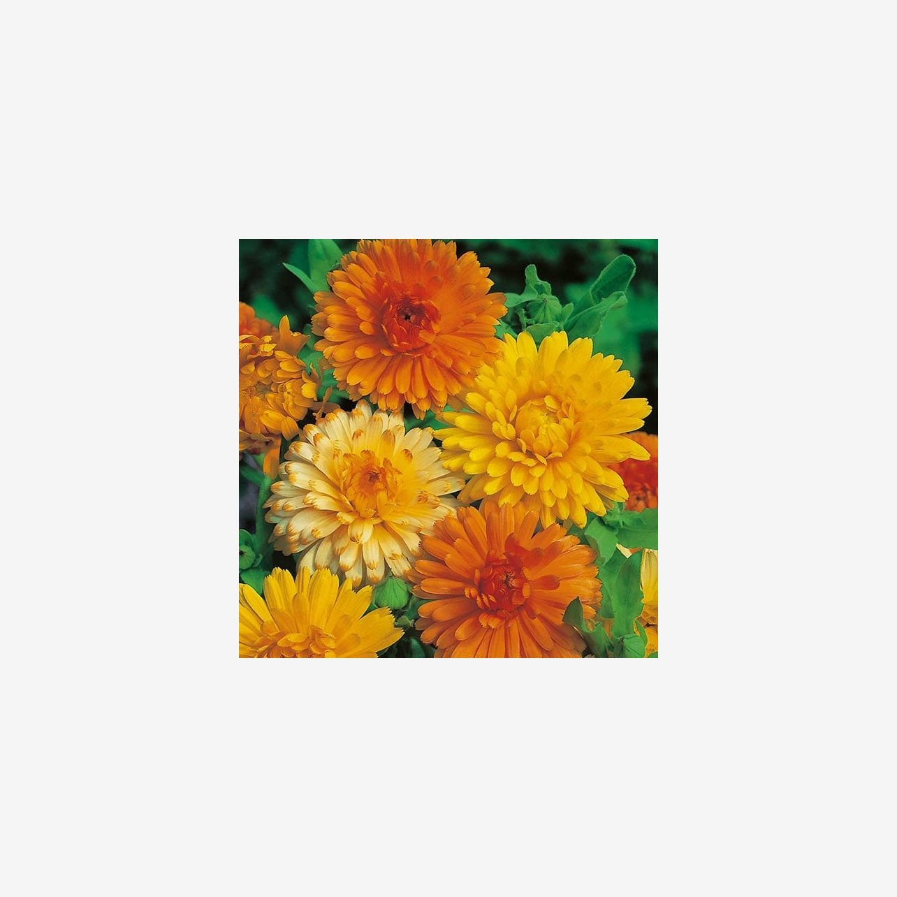 Ringblomma Art Shades är en färgstark blandning i varma nyanser av aprikos, orange och gult. Den blommar rikligt hela sommaren och är både dekorativ i rabatten och användbar som snittblomma.