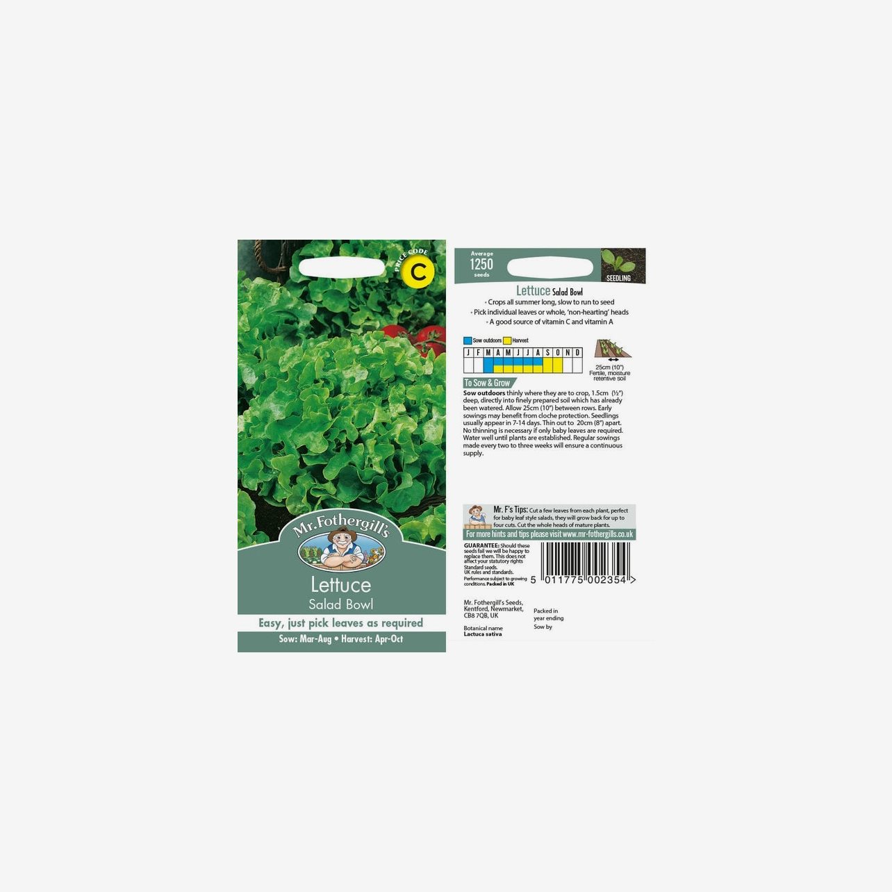 Sallat Salad Bowl är en lättodlad och mycket produktiv bladsallat som ger skörd under hela sommaren. Den är långsam att gå i blom och passar perfekt för successiv skörd, antingen genom att plocka enstaka blad efter behov eller genom att skörda hela, lösa huvuden som inte bildar hjärta.