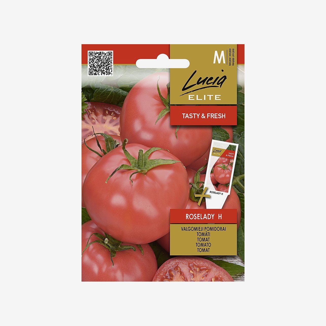 En fröpåse innehåller ca 10 tomatfröer till den rosa tomaten Roselady F1.