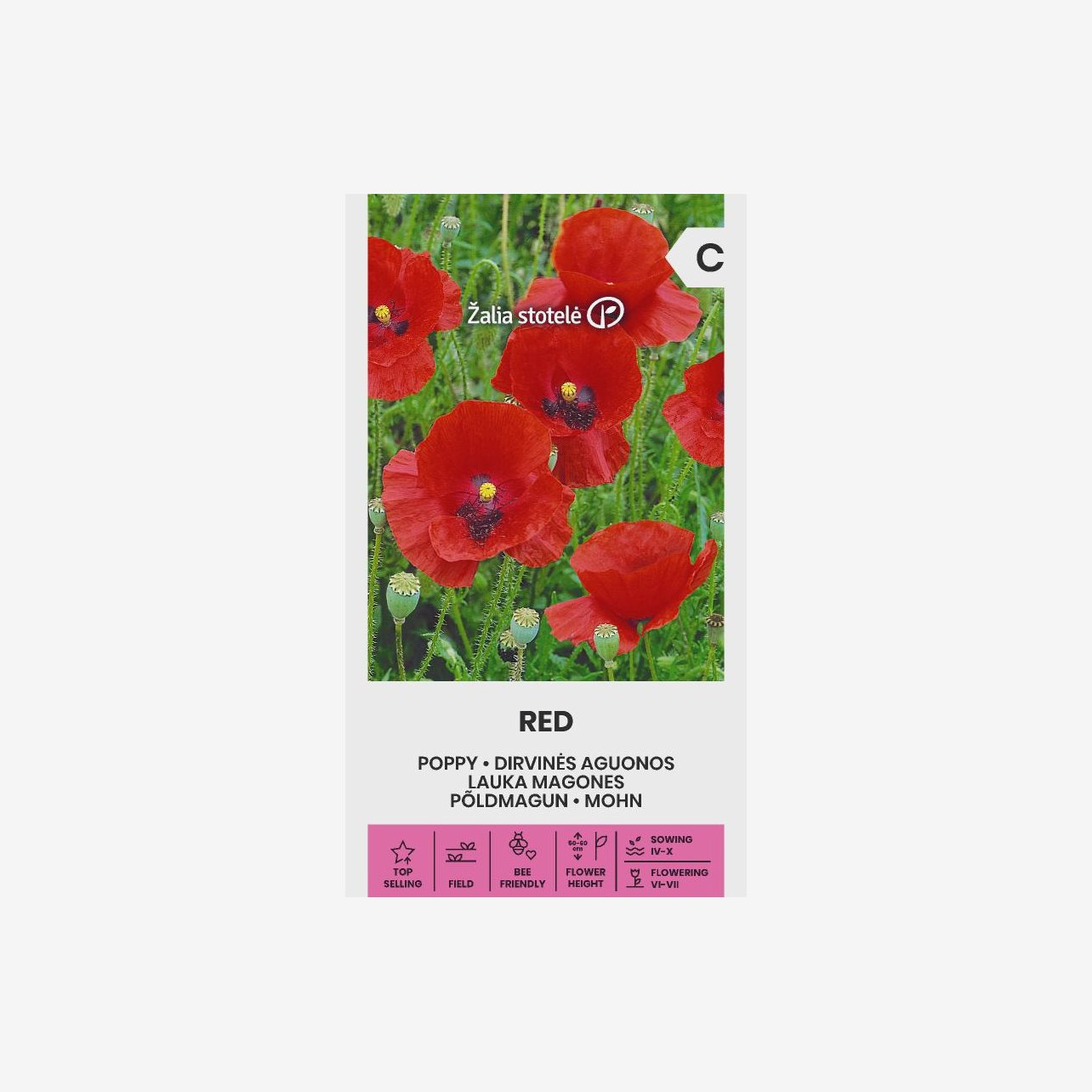 En fröpåse innehåller flera tusen fröer till röd vallmo.