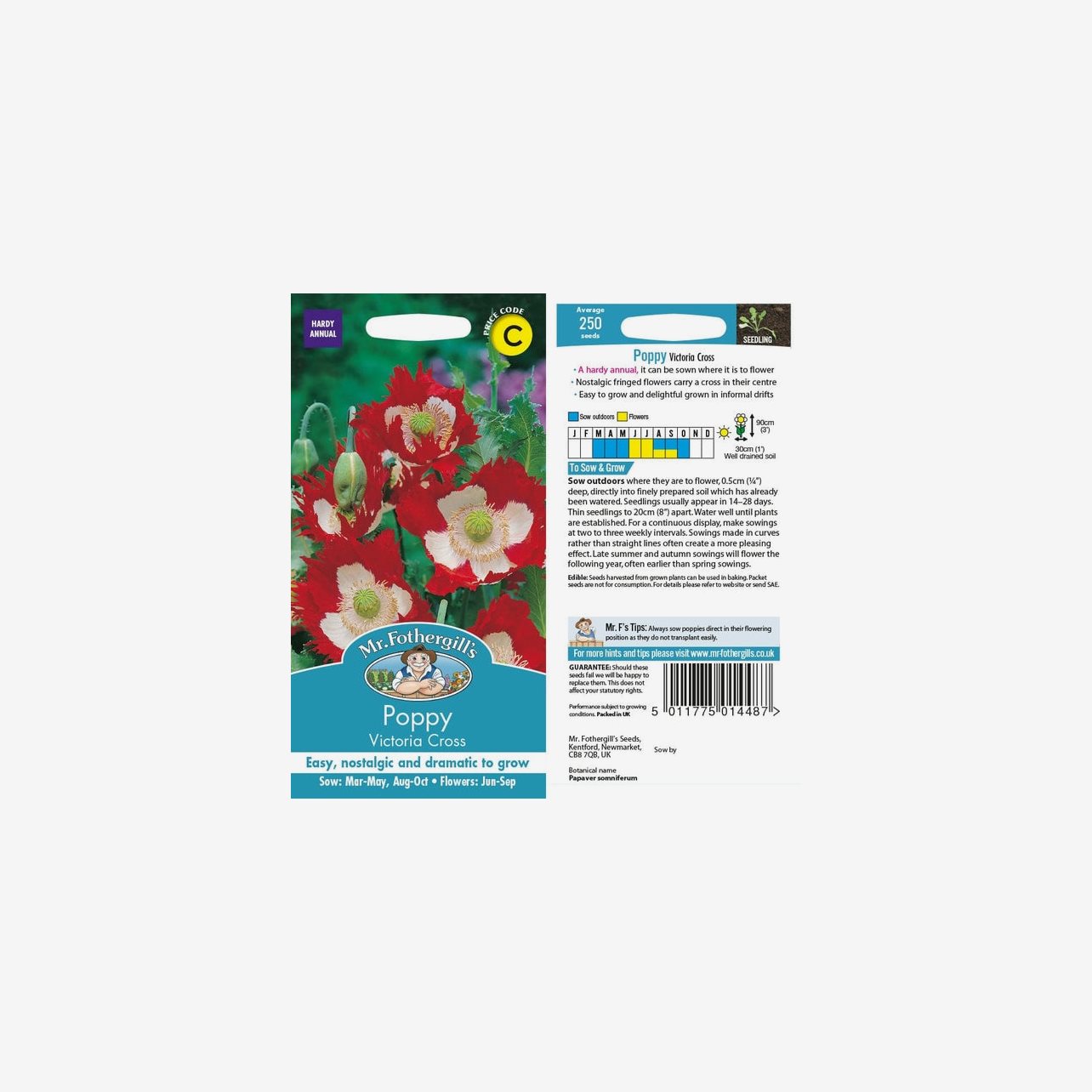 Vallmo, Opievallmo Victoria Cross är en klassisk och dekorativ sort med unika fransiga blommor och ett tydligt kors i mitten – mycket effektfull i naturlika planteringar.