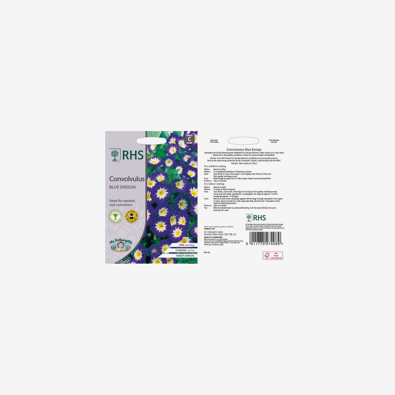 Denna fröpåse har engelsk text.