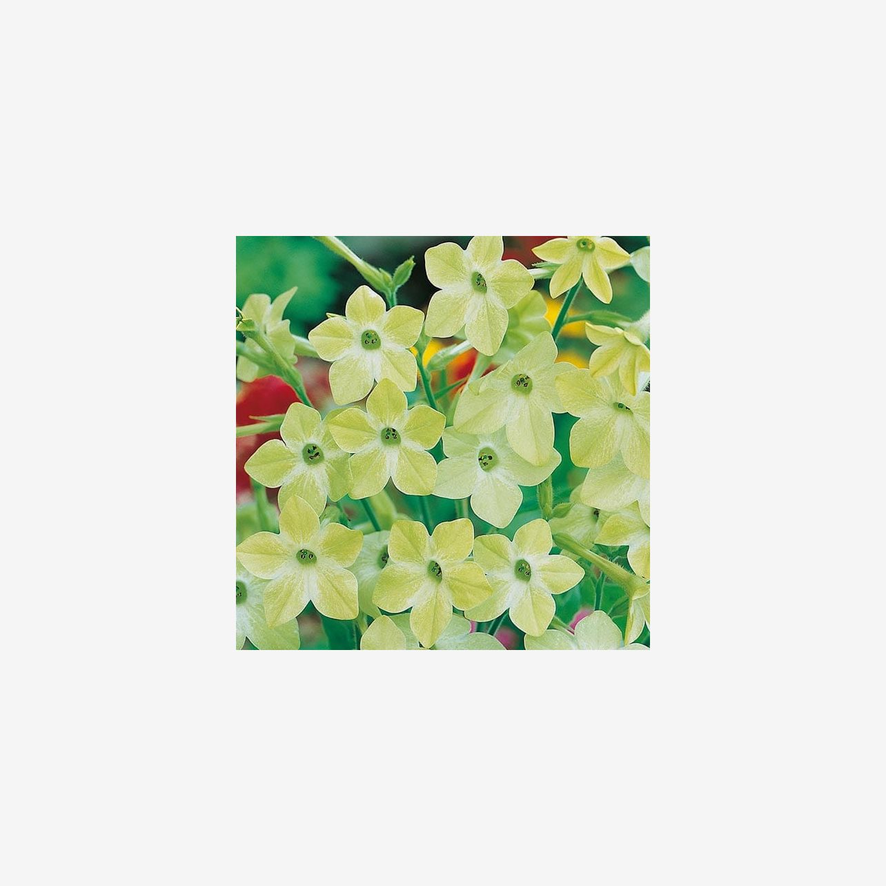 Blomstertobak Lime Green är en unik och elegant sort med ovanliga blommor i mjukt limegrön nyans som ger ett fräscht och modernt uttryck i rabatter och planteringar. Den ljusa färgen skapar en vacker kontrast till mer traditionella sommarblommor och gör sorten till ett utmärkt blickfång. Lime Green är dessutom känd för sin milda kvällsdoft som blir tydligare när solen går ner, vilket gör den perfekt för plantering nära uteplatser och gångar.