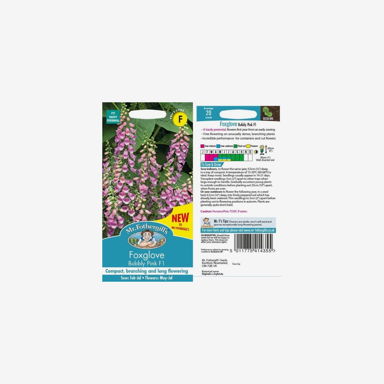 Fröpåsen innehåller 50 fröer. Det latinska namnet är Digitalis purpurea och plantorna blir cirka 60 cm höga.