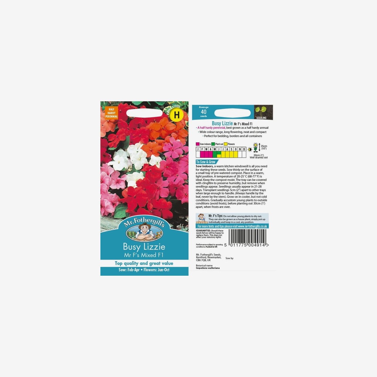 Flitiga Lisa Mr F’s Mix F1 är en kraftig och rikblommande sort som ger ett överflöd av blommor i klara och intensiva färger. Den är perfekt för rabatter, krukor och balkonglådor och trivs särskilt bra i halvskuggiga lägen.