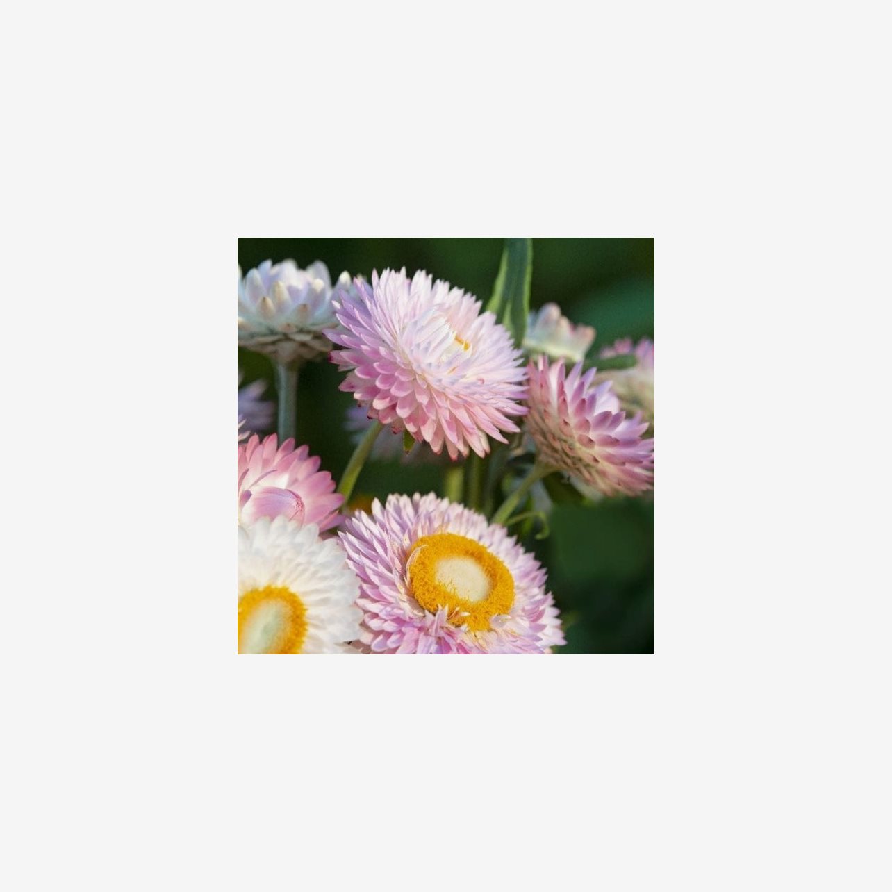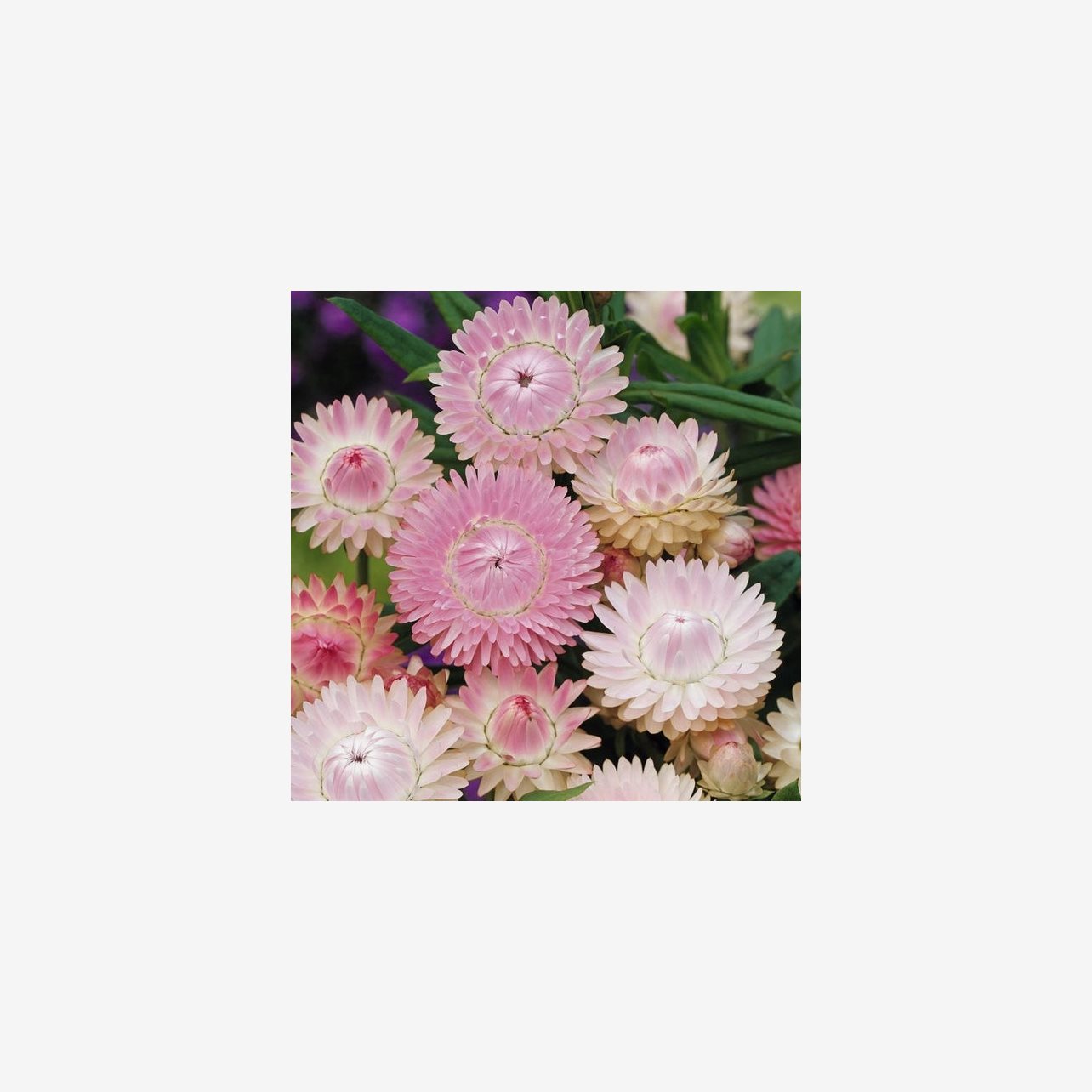 Jätteeternell Silvery Rose är en elegant och stilren sort med papperstunna blommor i en mjukt silvrigt rosa ton. Den är ett självklart val för torkade buketter och arrangemang som håller färg och form i många år. Blommorna är lika dekorativa i knoppstadiet som fullt utslagna och ger ett vackert, lite skimrande uttryck i rabatter och buketter. Sorten passar utmärkt i både klassiska och moderna trädgårdar.