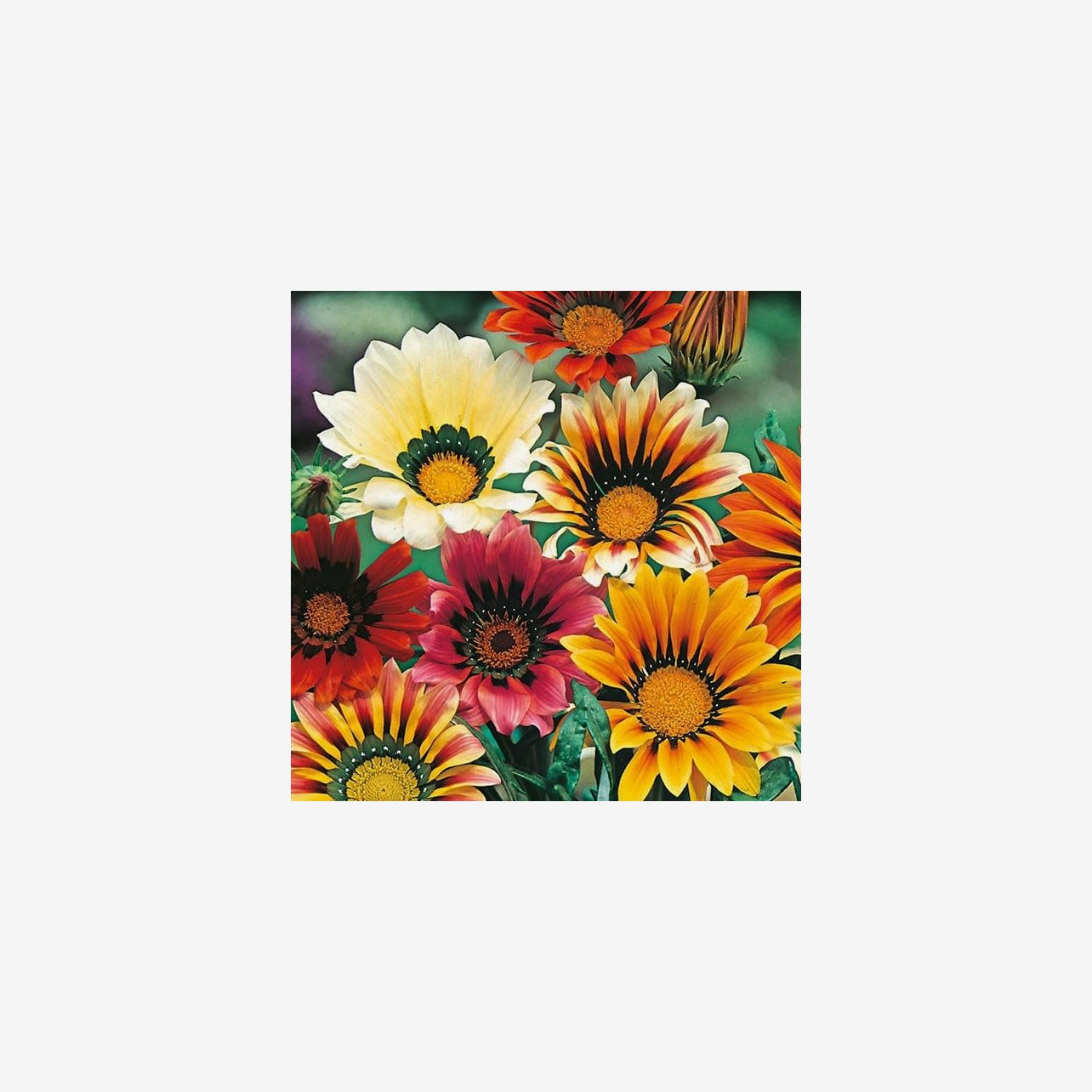 Fröpåsen innehåller cirka 25 fröer. Det latinska namnet är Gazania rigens och plantorna blir cirka 20–25 cm höga.