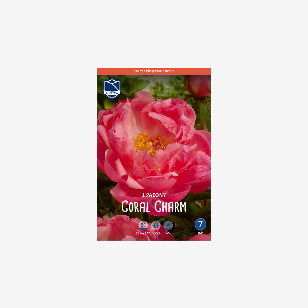 En förpackning innehåller 1 rotknöl till pionen Coral Charm.