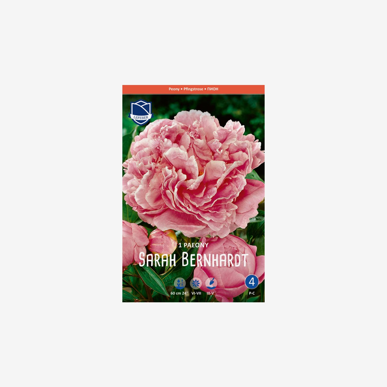 En förpackning innehåller 1 rotknöl till pionen Sarah Bernhardt.
