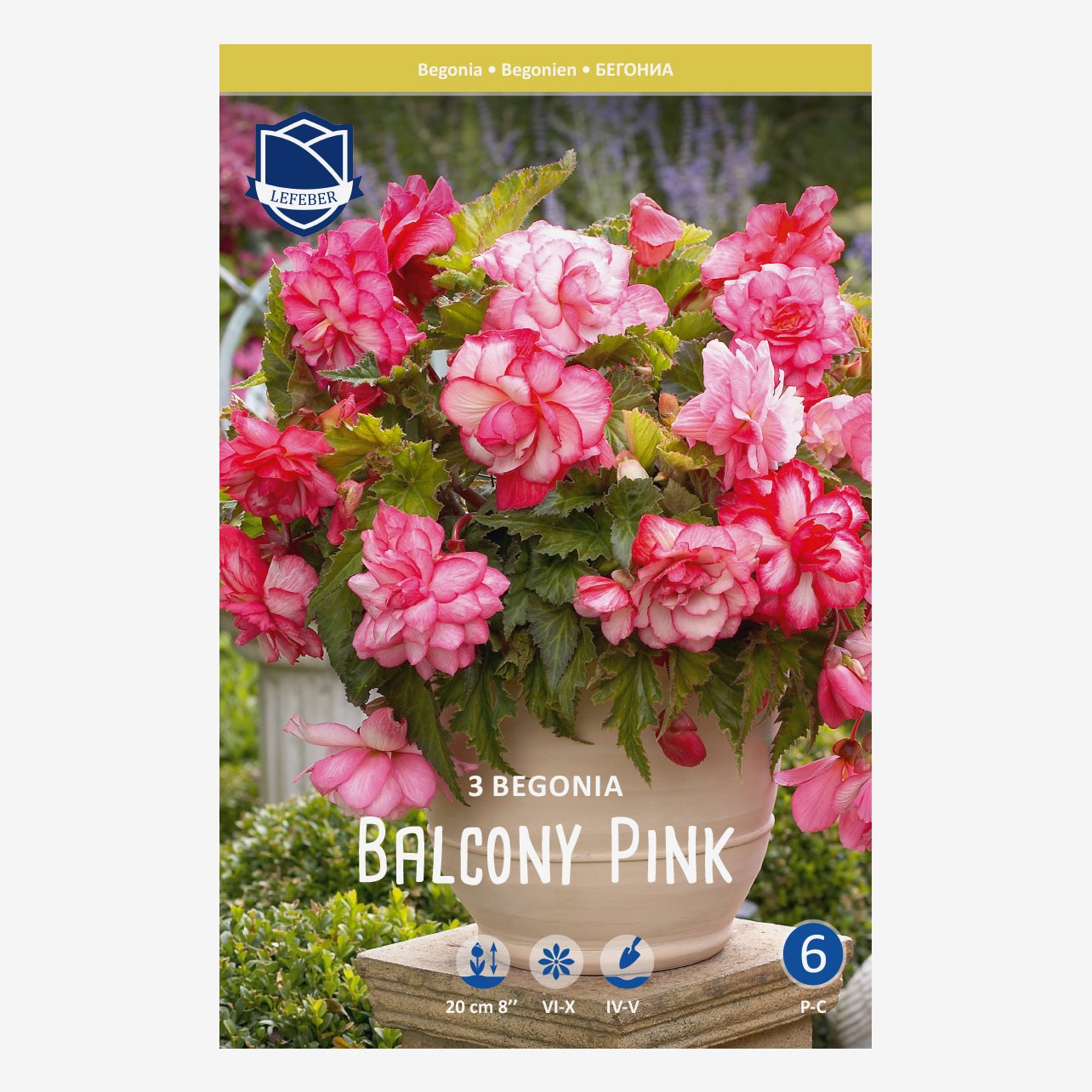 Denna begonia heter Balcony pink. Den har ett härligt hängade växtsätt och får fina rosa/vita blommor. Innehåller 3 lökar och blir drygt 20 cm hög.