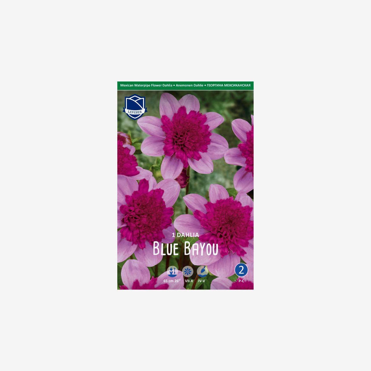 Denna dahlia heter Blue Bayao och blir ca 60-70 cm hög. Den får ovanliga blommor i ljust och mörkt rosa.