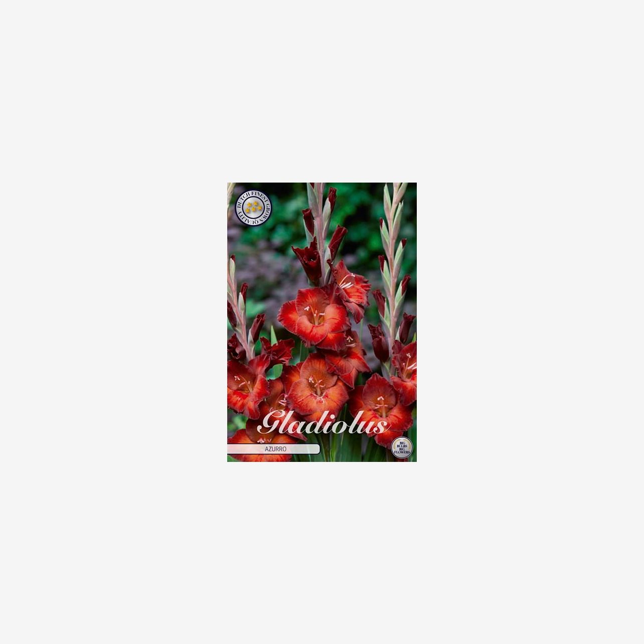 En förpackning innehåller 10 knölar till gladiol Azurro.