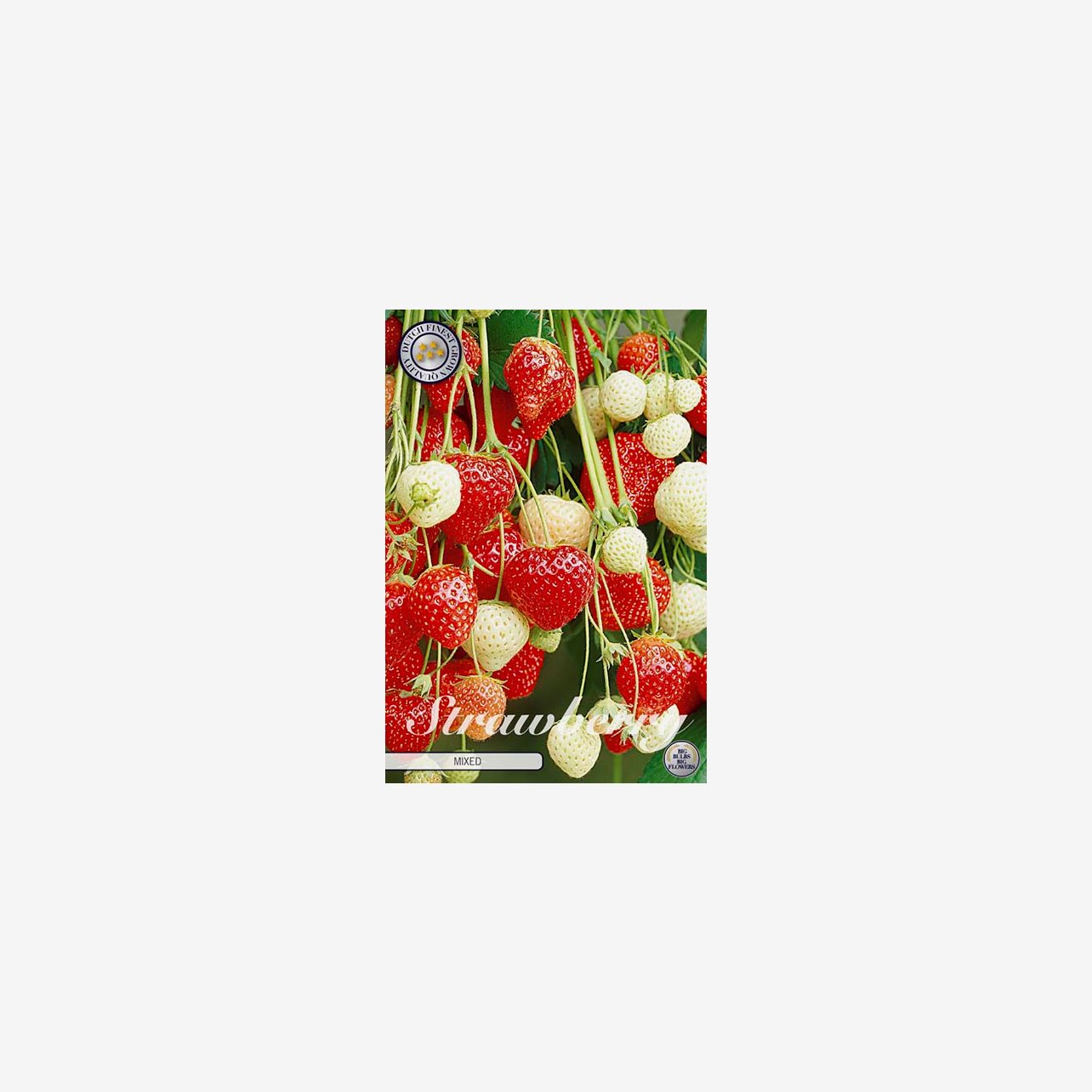 En rolig blandning av olika jordgubbar, vita och röda. Genom att blanda olika sorter får du en lång skördetid och kan prova olika smaker.