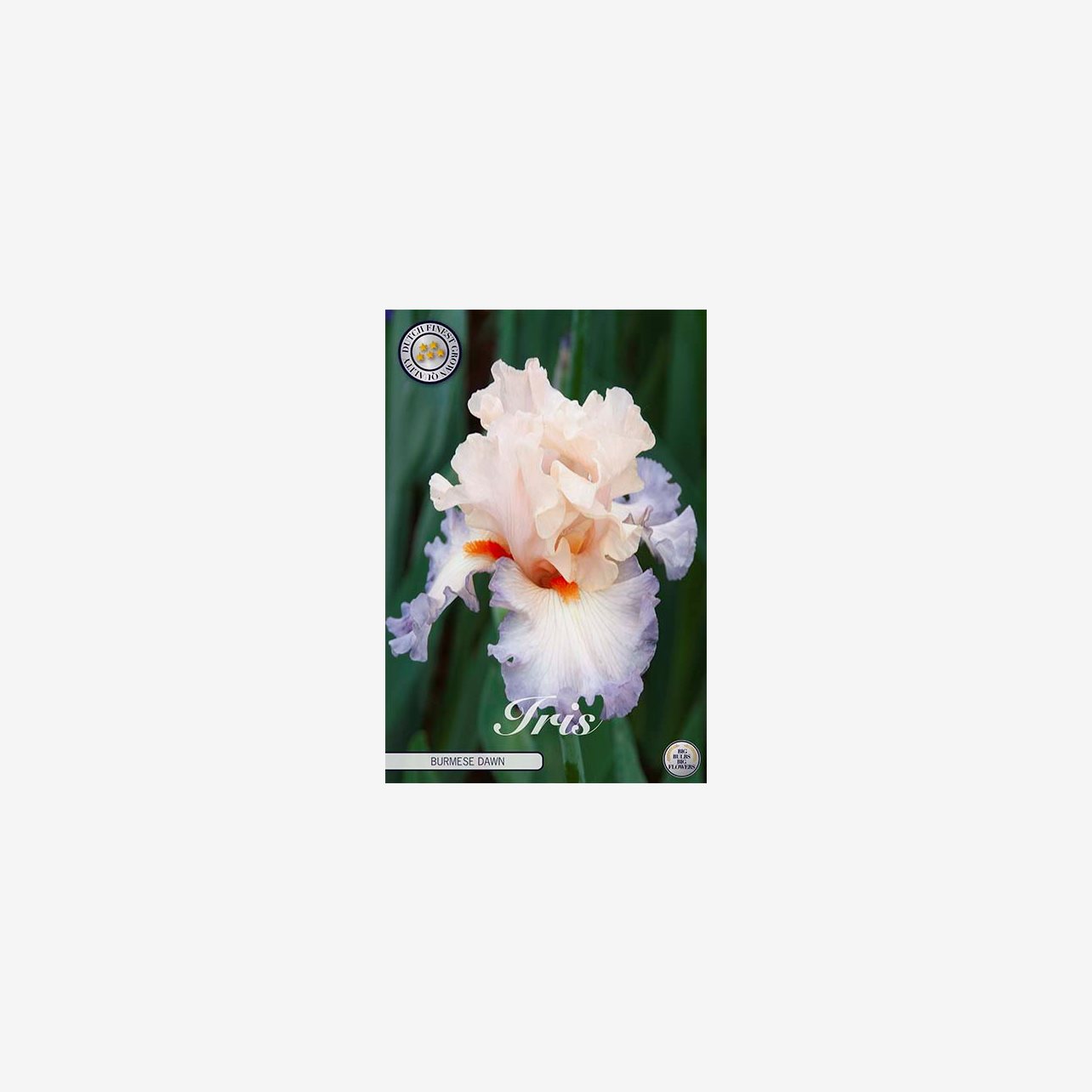 En förpackning innehåller en rotknöl till Iris Burmese Dawn.