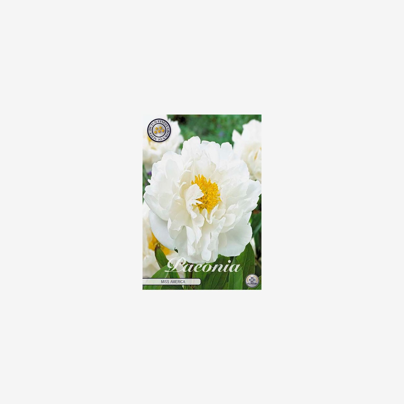 Denna sort heter Miss America och får halvfyllda, kritvita blommor. Får även många sidoknoppar och på grund av alla blommor kan den ibland behöva lite stöd. Doftar gott.