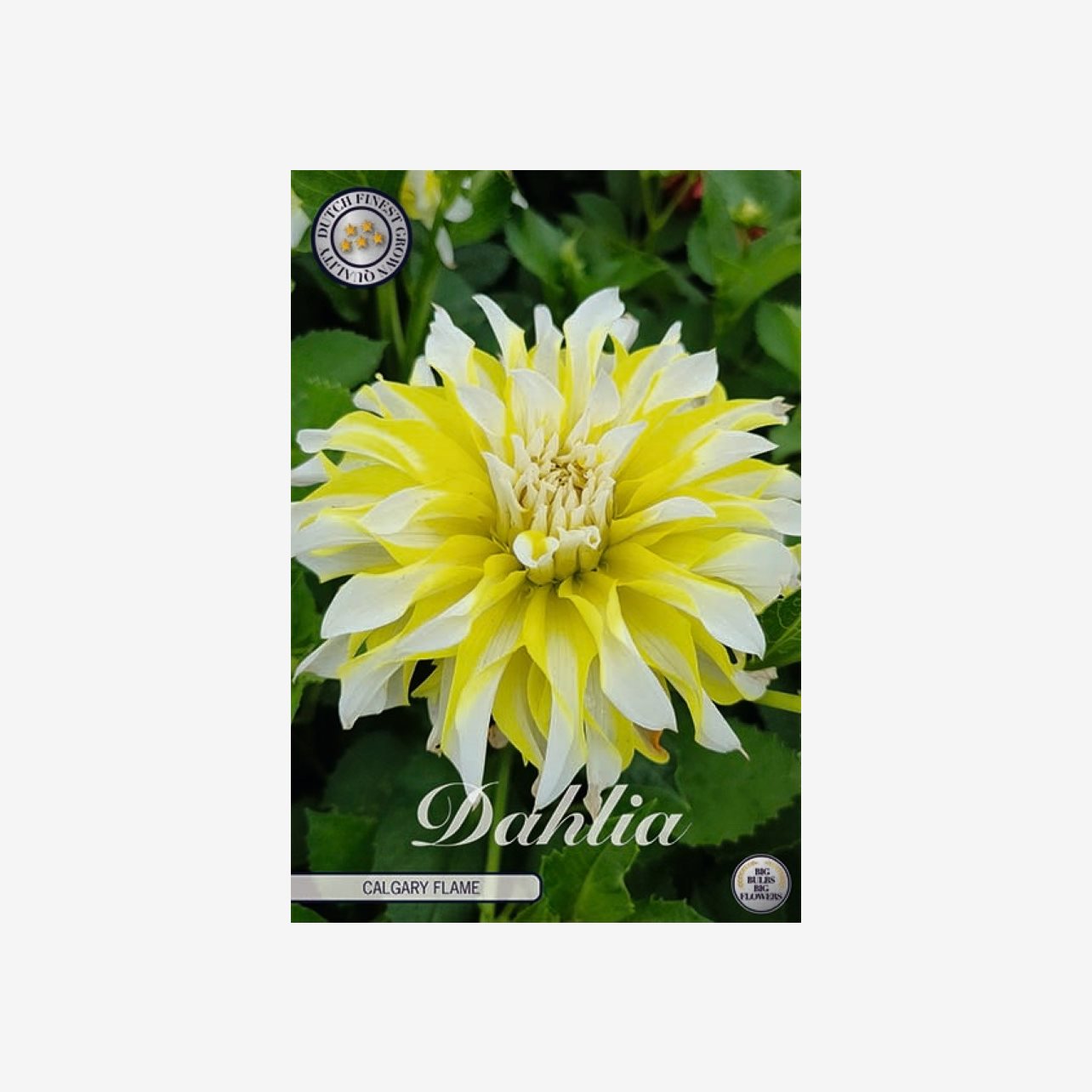 En vacker gul/vit dekorativ dahlia som blir ca 80 cm hög och blommar från juli tills frosten kommer.