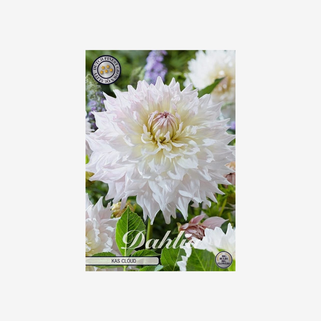 En stilren dahlia med vita blommor med lätt rosa inslag.