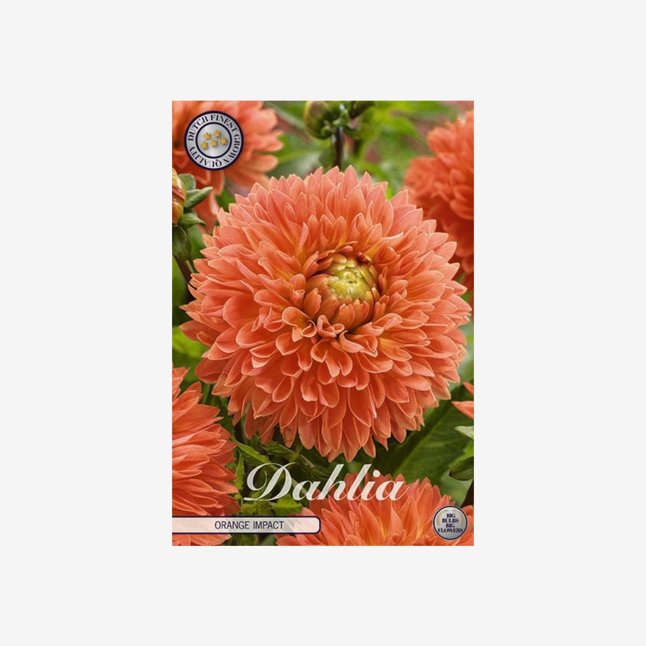 Innehåller 1 knöl till dahlia Orange Impact per förpackning.