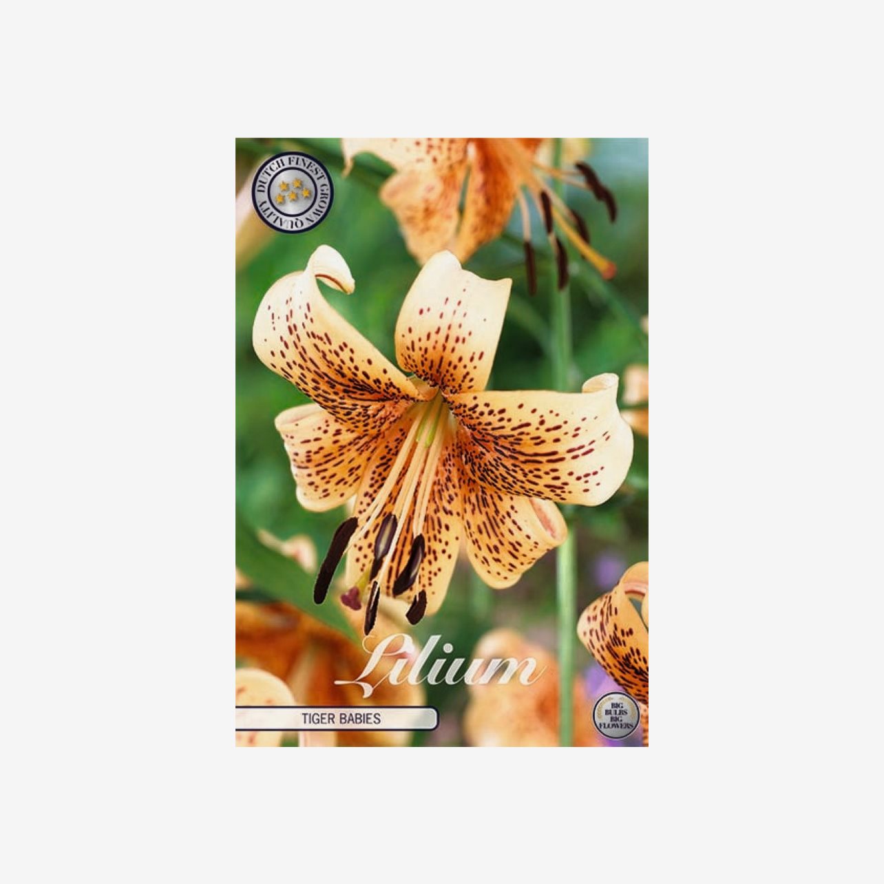 En förpackning innehåller 2 knölar till Tigerliljan Tiger Babies, som bör planteras med 30 cm mellanrum.