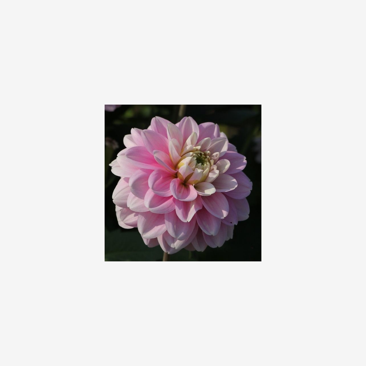 En högvuxen och vacker dekorativ dahlia som får ganska stora, ca 20 cm, rosa blommor.