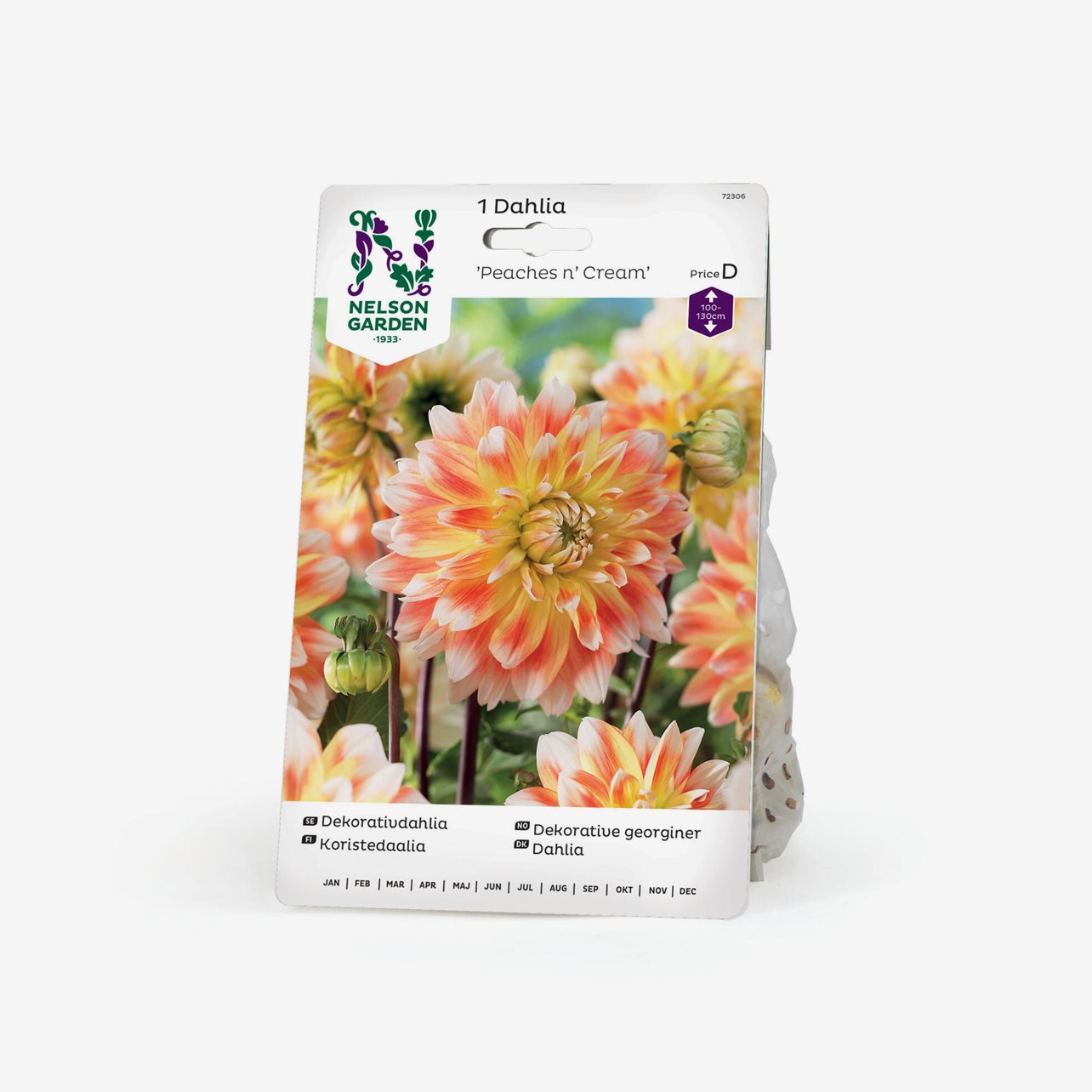 En förpackning innehåller 1 dahliaknöl till Peaches and Cream.