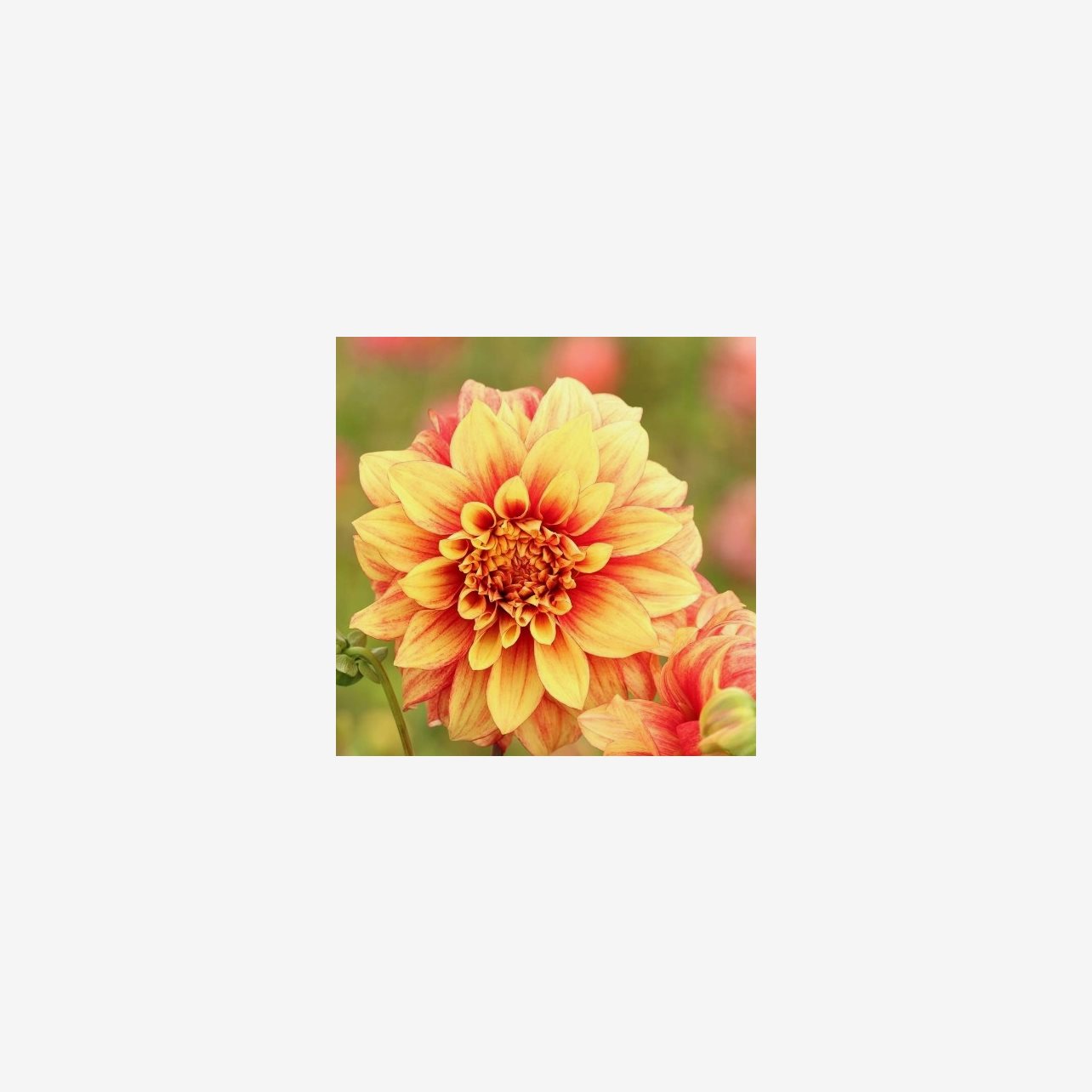 Dazzling Magic är en fin dahlia vars blommor skiftar i färg från rött till orange och gult.