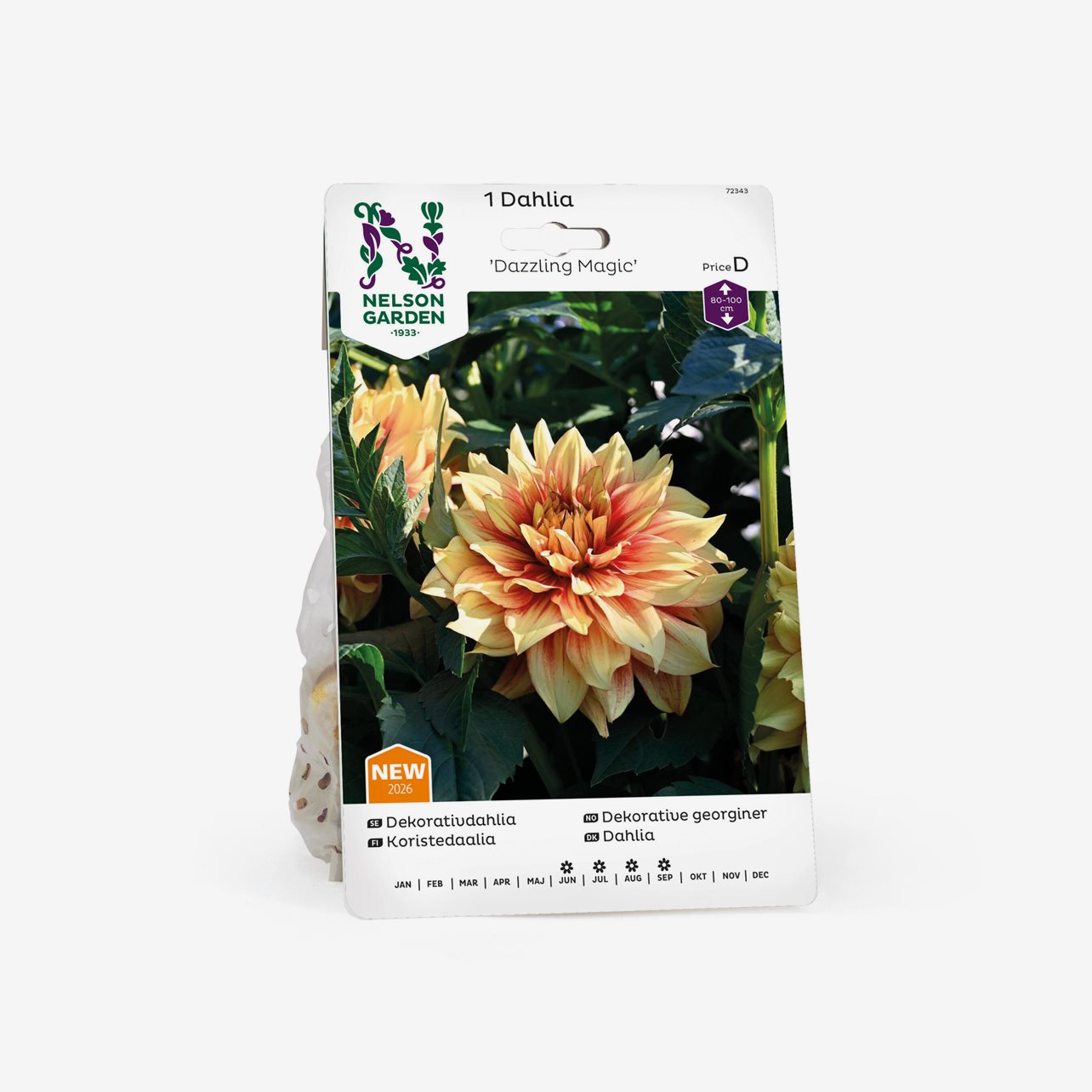 En förpackning innehåller 1 rotknöl till dahlian Dazzling Magic.