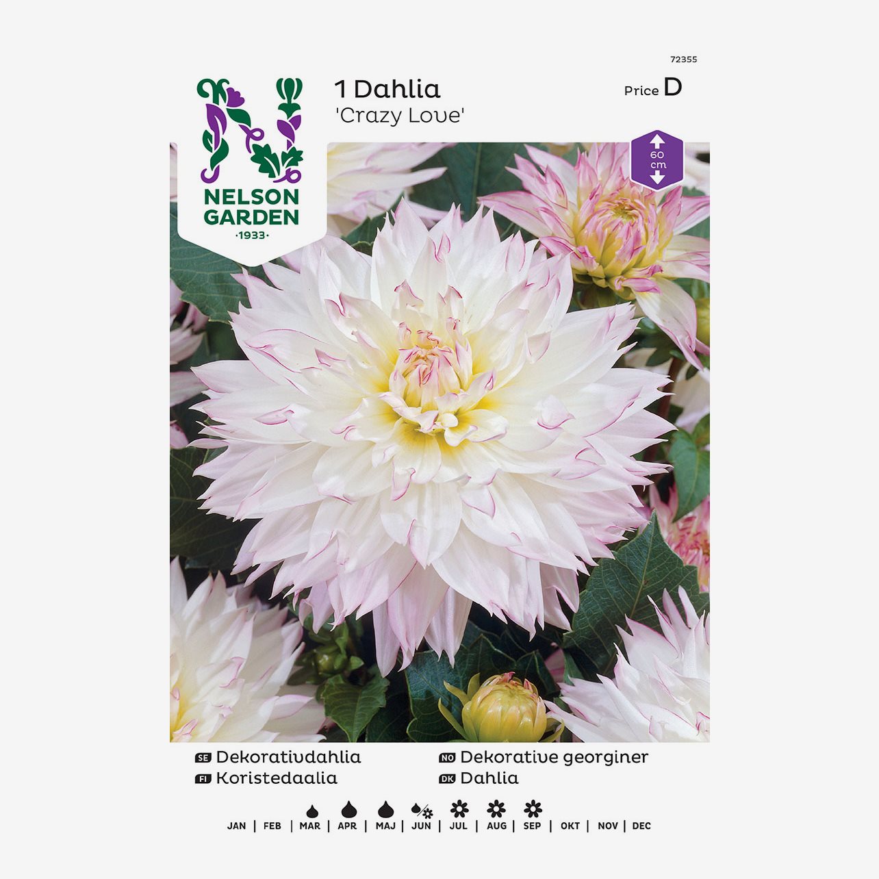 En synnerligen odlingsvärd dahlia med stora, vita blommor med skimrande rosa inslag. Medelhögt, stadigt växtsätt gör den perfekt i blandade rabatter ihop med perenner och sommarblommor. Även bra i kruka.