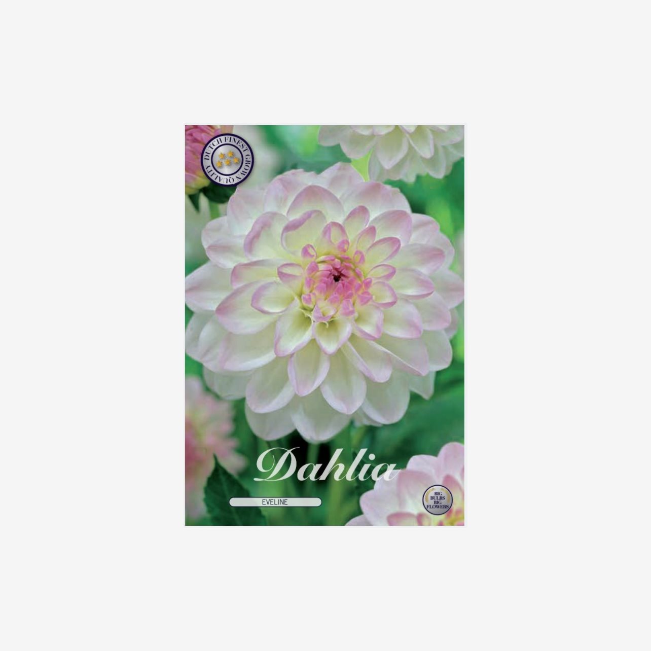 Vacker rosa/vit dahlia som blir ca 1 meter hög. En förpackning innehåller 1 dahliaknöl.