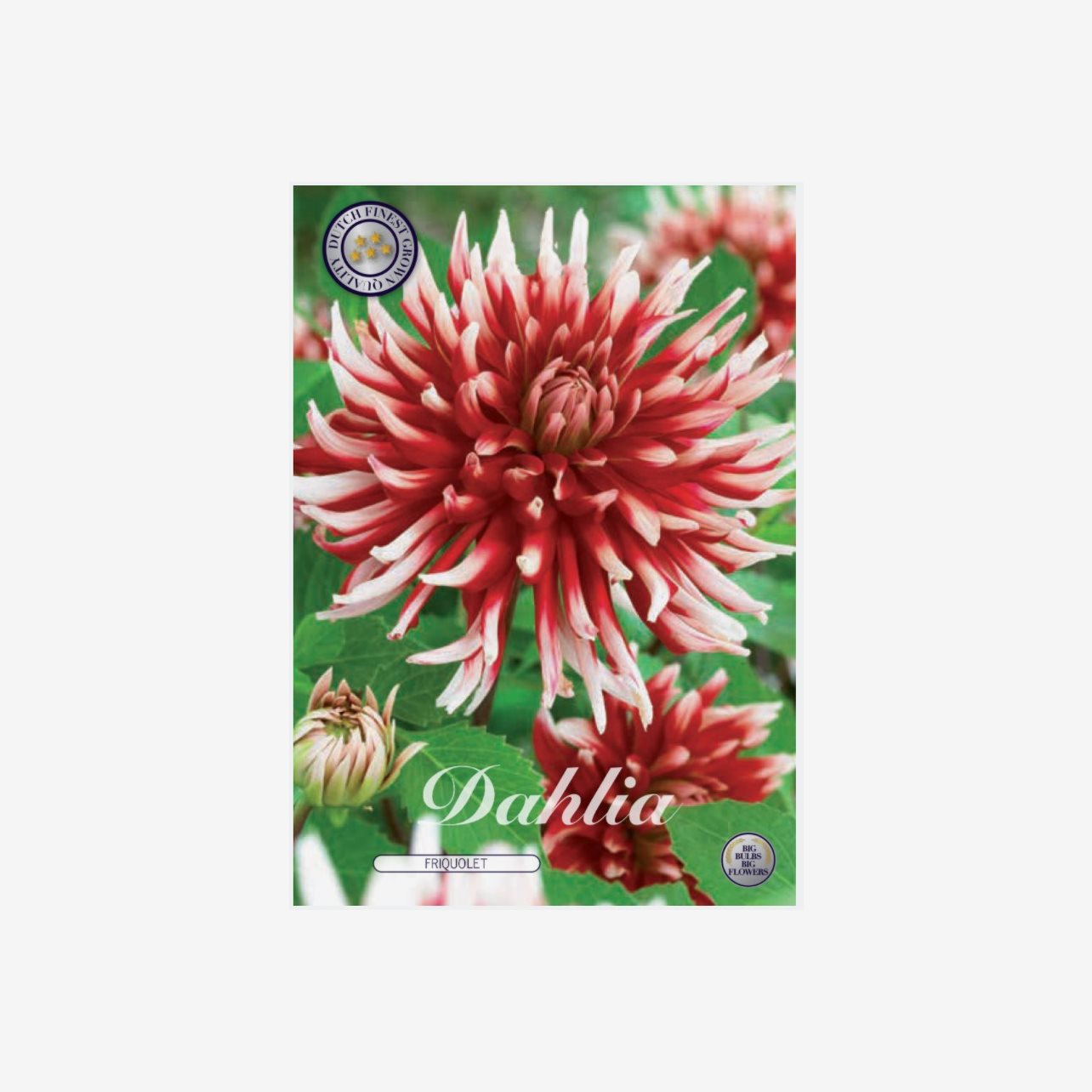 En tuff röd/vit kaktusdahlia som blir ca 90 cm hög.