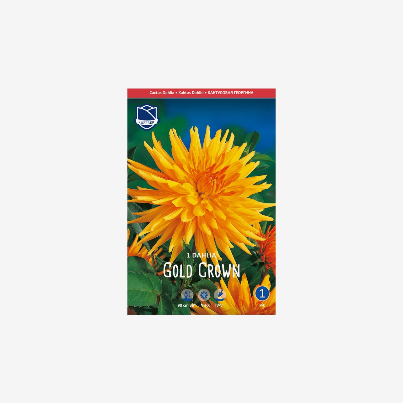 Denna kaktusdahlia heter Gold crown och blir ca 100 cm hög. En fp innehåller 1 dahliaknöl.