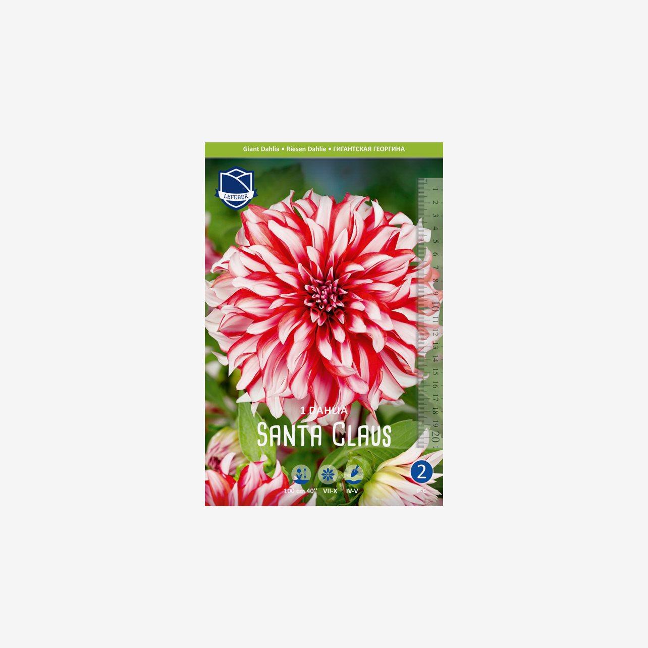 Denna dahlia heter Santa Claus och blir ca 1 meter hög. Innehåller 1 dahliaknöl per förpackning.