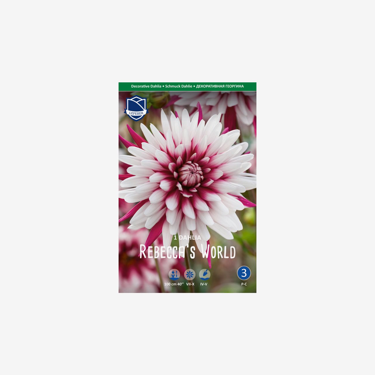 Denna dekorativa dahlia heter Rebeccas world och blir ca 100 cm hög. En fp innehåller 1 dahliaknöl.
