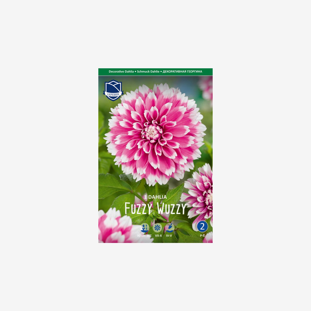 Denna dekorativa dahlia heter Fuzzy wuzzy och blir ca 100 cm hög. En fp innehåller 1 dahliaknöl.