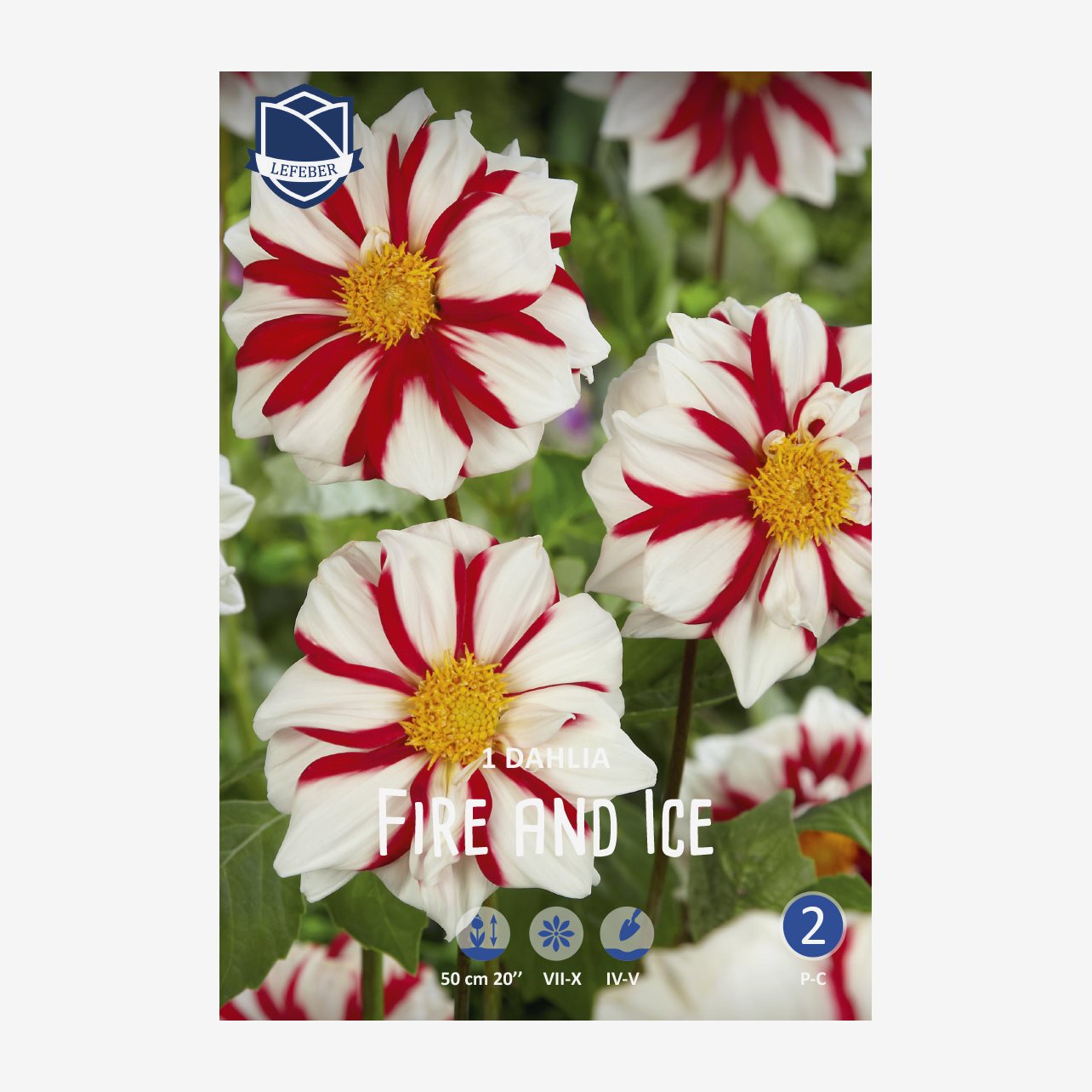 Denna tvåfärgade dahlia heter Fire & ice och blir ca 50 cm hög. Innehåller 1 dahliaknöl per förpackning.
