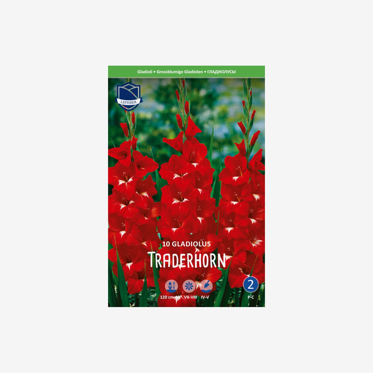 Denna gladiol heter Traderhorn och blir drygt 1 meter hög. Den blommar juli - augusti.