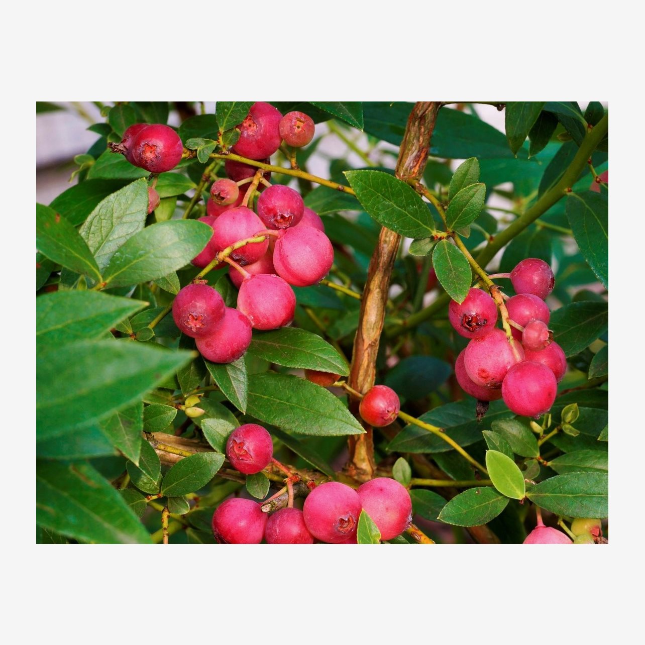 Ovanliga amerikanska blåbär som får rosa bär. Sorten heter Pink lemonade och får stora, mörkrosa bära med vitt fruktkött och en god blåbärssmak.