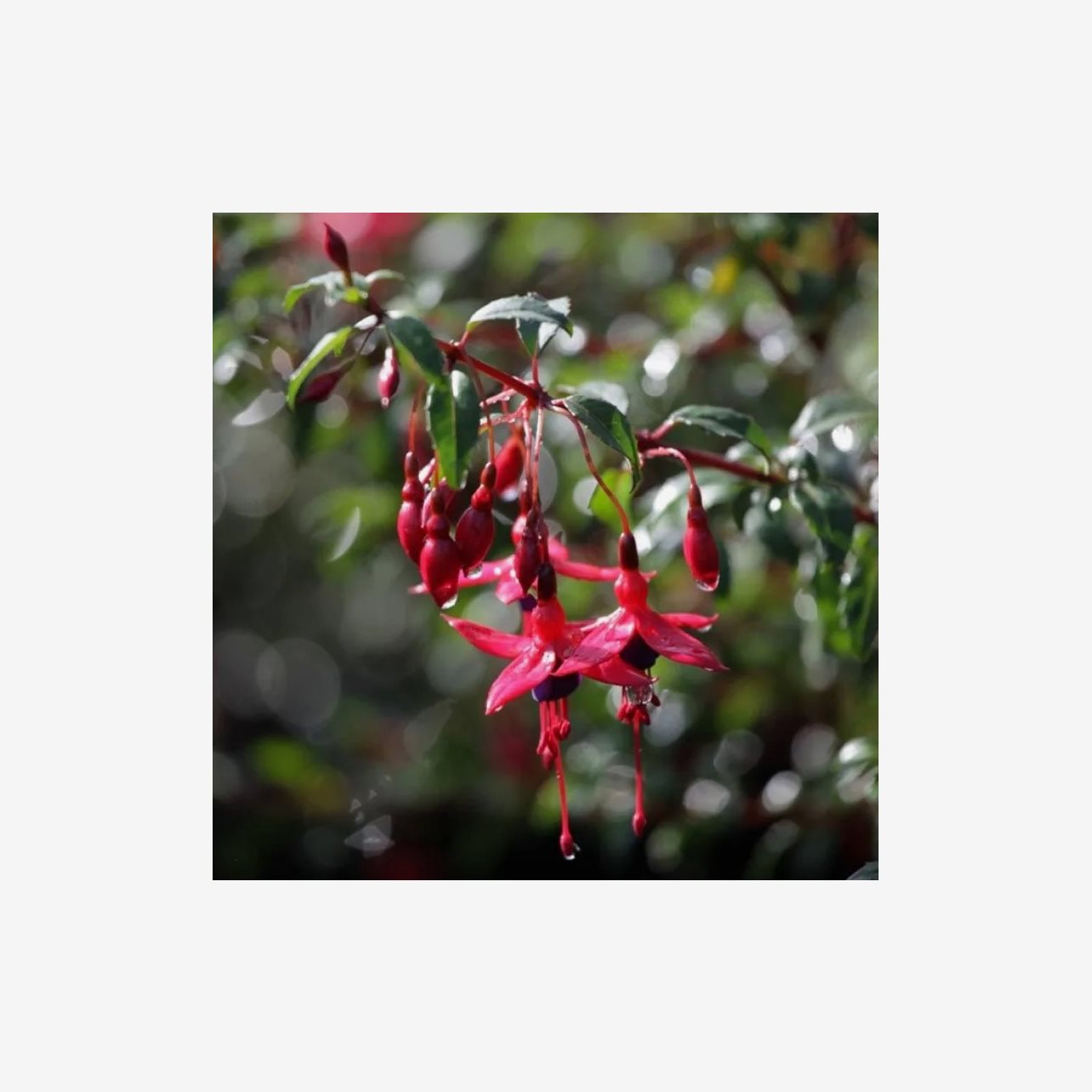 Fuchsia Ricartonii blommar hela sommaren. Precis som alla fuchsior så är det tålig och anspråkslös och klarar både sol och halvskugga lägen bra. Tänk på att ju mer sol och värme den får desto mer vatten behöver den.