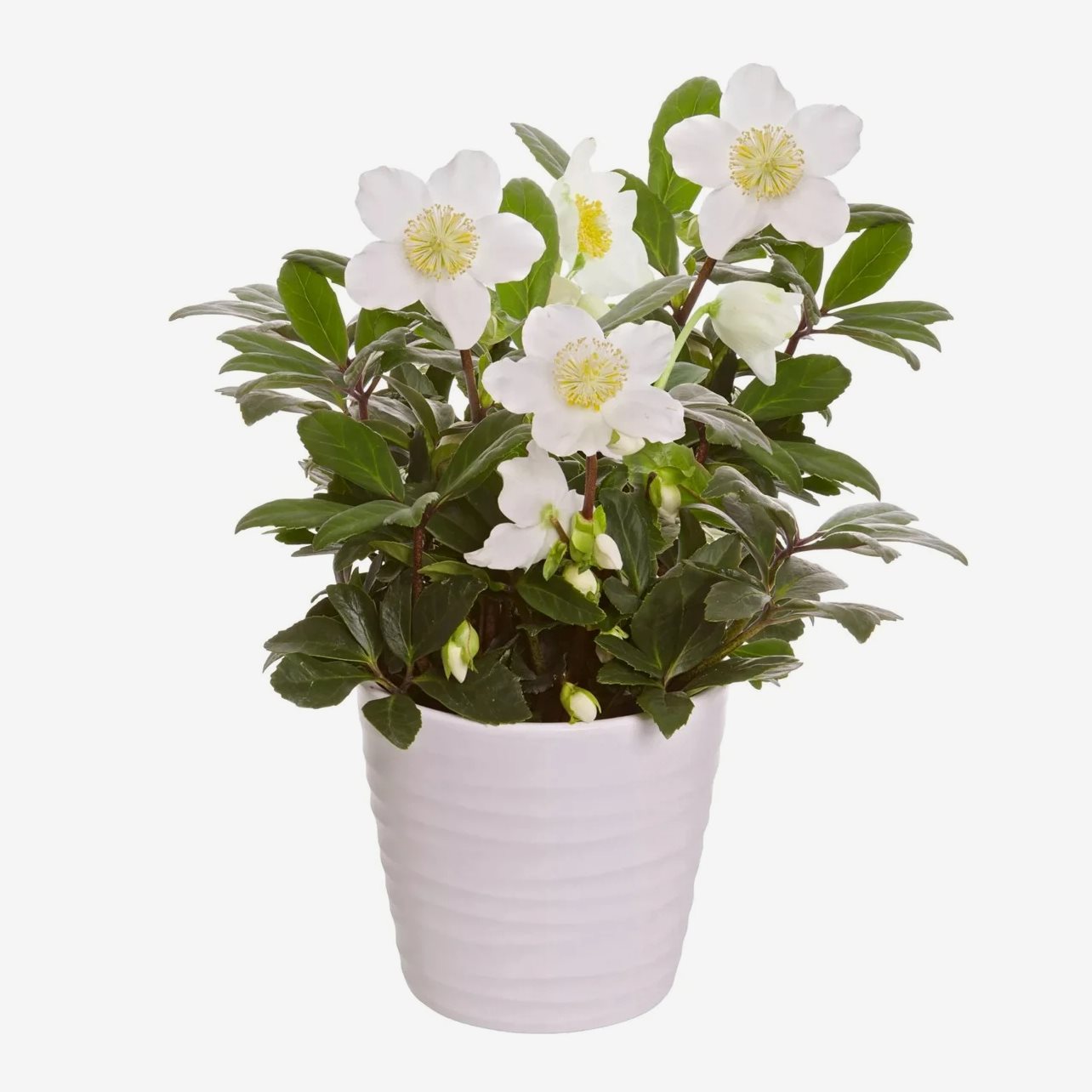 En vacker, vit julros som du kan ha både inomhus i ett ljust fönster eller plantera ute i rabatten. Utomhus blommar den tidig vår.
